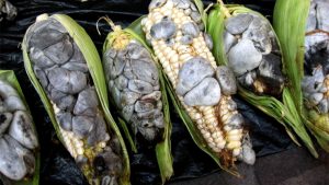 طی گزارشات انجام داده بلال های آلوده و بیمار نسبت به بلال سالم %35 کاهش وزن داشته اند گالها ابتدا کوچک و به اندازه یک نخود بوده ولی نهایتا به قطر 15 سانتی متر می رسد . گالها معمولا در نوک خوشه ذرت تشکیل می شود اما در نقاط دیگر ذرت نیز می تواند مشاهده شود و در بعضی شرایط کل بلال توسط گالهای سیاه رنگ تا خاکستری جایگزین شده که به صورت کامل یا ناقص توسط پوشش بلال پوشیده و قسمت های آلوده پر از ریسه های قارچ می شود و سلولهای گیاه تحریک به تقسیم بیشتر شده که باعث ایجاد گال میشود و با پاره شدن گالها در فضا پخش و پراکنده می شود .