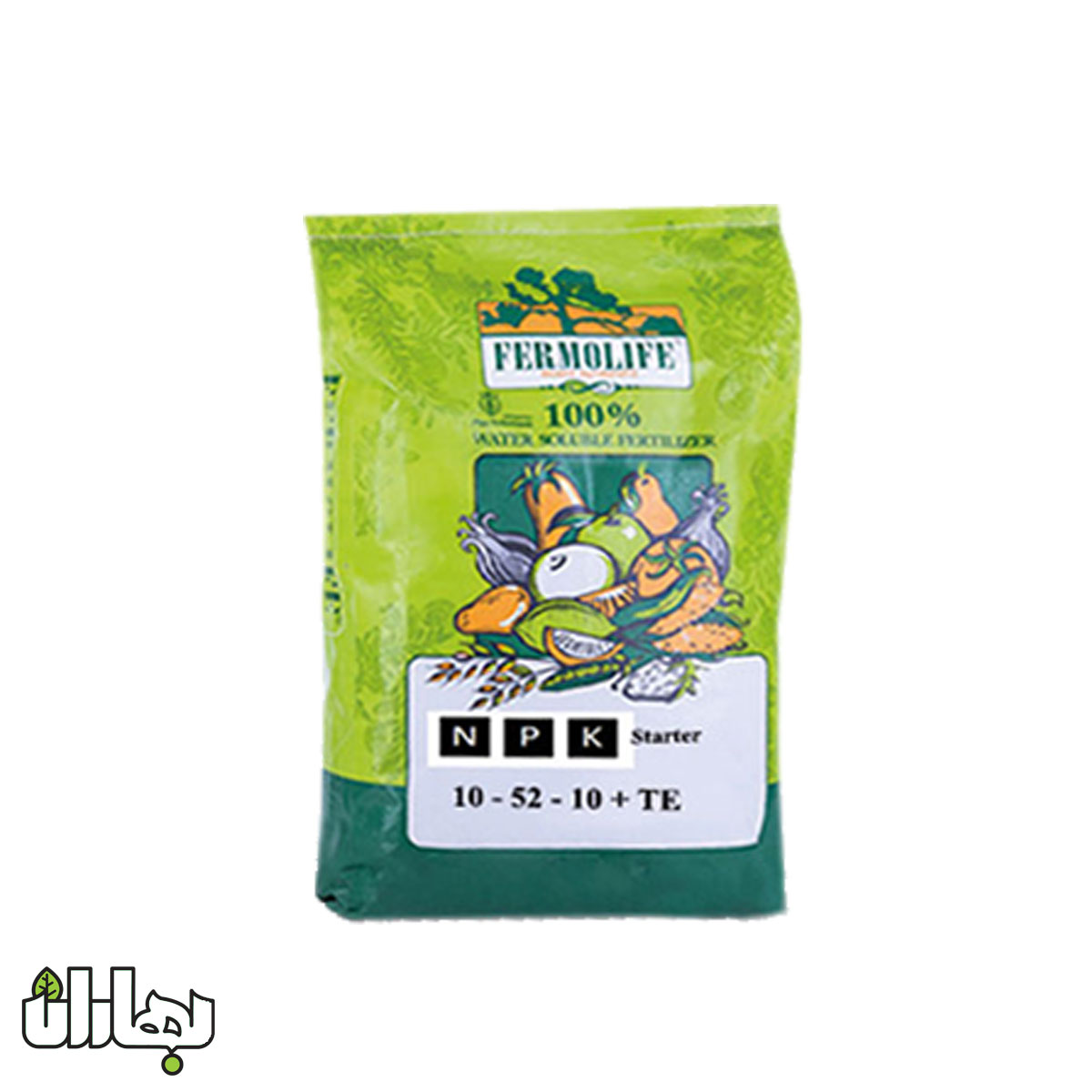 کود NPK 10 – 52 – 10 کودی مناسب جهت تامین عناصر فسفر در خاک است که سبب افزایش و بهبود عملکرد ریشه زایی در جهت جذب غذایی بیشتر استفاده می شود که حاوی 10 % ازت، 52 % فسفر و 10 % پتاسیم بوده همچنین دارای عناصر دیگری همچون میکرو آهن، روی، منگنز و مس است که همگی کلات شده به فرم EDTA کاملا پایدار اند و به همراه میزان مناسبی از درصد عنصر بور محلول در آب می باشد.