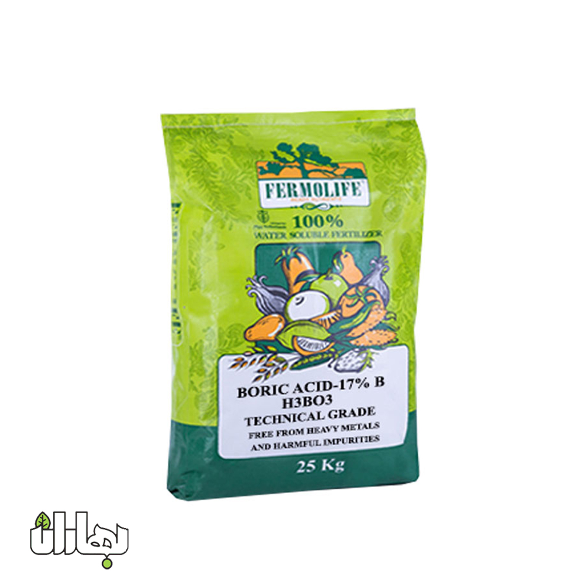 اسید بوریک فرمولایف حاوی 17 درصد بور عاری از هرگونه ناخالصی با جذب فوق العاده است. عنصر بور یکی از عناصر پر اهمیت در فرایند تولیدمثل و گرده افشانی و رشد لوله گرده و تولید دانه و تشکیل میوه می باشد که سبب تسریع رشد بافت مریستمی و فعال شدن جوانه های انتهایی و جلوگیری از ریزش گل و افزایش تبدیل گل به میوه و افزایش راندمان متابولیسم و جا به جایی قندها میشود.